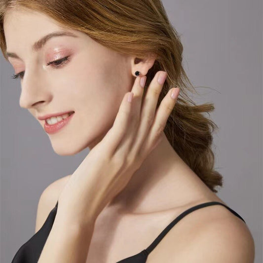 925 Sterling Silver 0.5-1 Carat Moissanite 4 Claws Round Black Earrings Fashion Trendy Temperament Advanced Design Light Luxury