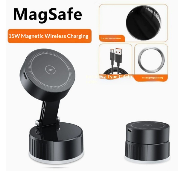 Color: 15W Wireless Charger [Obsidian Black] — foldable, featuring vacuum-based bionic adsorption technology paired with a powerful N52 magnet; supports a wider range of angle adjustments for hassle-free charging with no sticky residue left behind.
